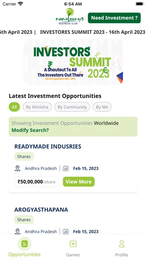 Additionally, Nimisha Business Club offers a range of investment opportunities curated by the platform itself. Investors can explore these opportunities and connect with Nimisha directly to further explore and potentially invest in these ventures.