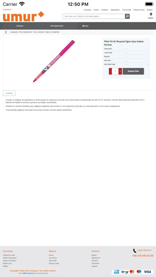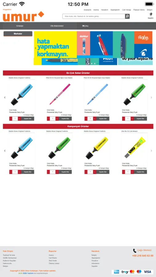 Umur B2B uygulaması hızlı arayüzü ve kolay kullanımı ile fark yaratıyor.