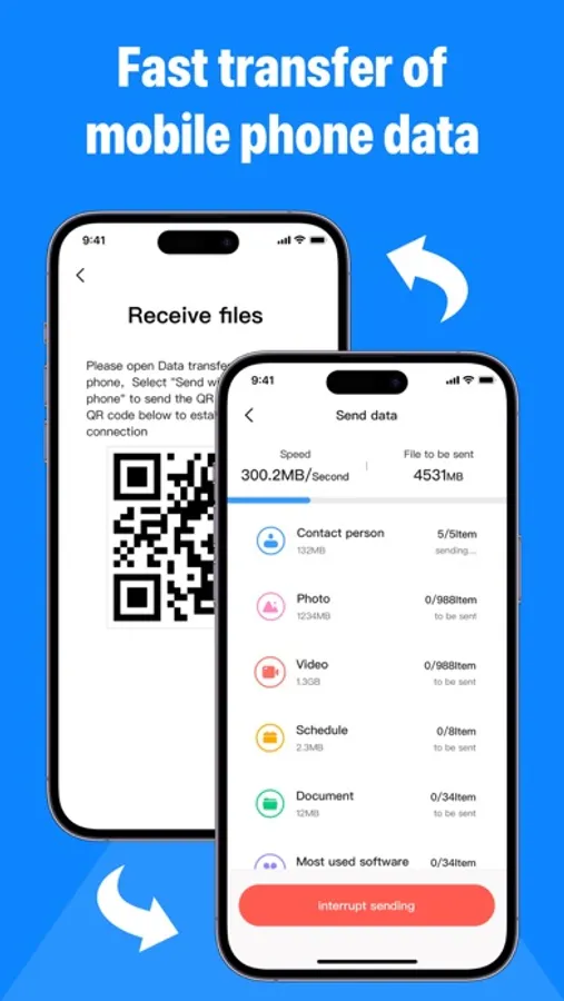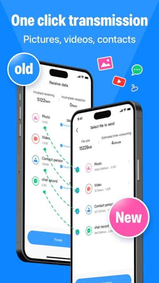 It is easy to use and transfer data such as address book, calendar, pictures, videos, etc. to the new device with one key. There is no need for network, WIFI, traffic, and additional equipment. It can be used as you go. It is completely free. There is a built-in chat record transfer tutorial, which makes it easy for you to experience efficient one-button switch.