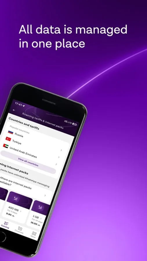 - With just one touch, adjust internet, roaming packages, and subscriptions, activate or deactivate communication, international, and roaming lines, and check tariff balance and payment history.