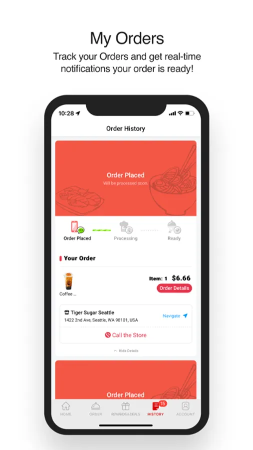 Track your Orders and get real-time notifications your order is ready!