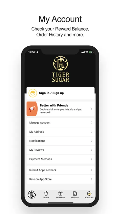 Check your Reward Balance, Order History and more.