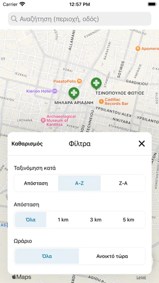 Καθημερινά προβάλλονται τα εφημερεύοντα Φαρμακεία από τον Φαρμακευτικό Σύλλογο Καρδίτσας. Η παρουσίαση των εφημεριών γίνεται σε λίστες και χάρτες προσφέροντας τη δυνατότητα στον χρήστη να βρει εύκολα και γρήγορα τα πλησιέστερα εφημερεύντα φαρμακεία.
