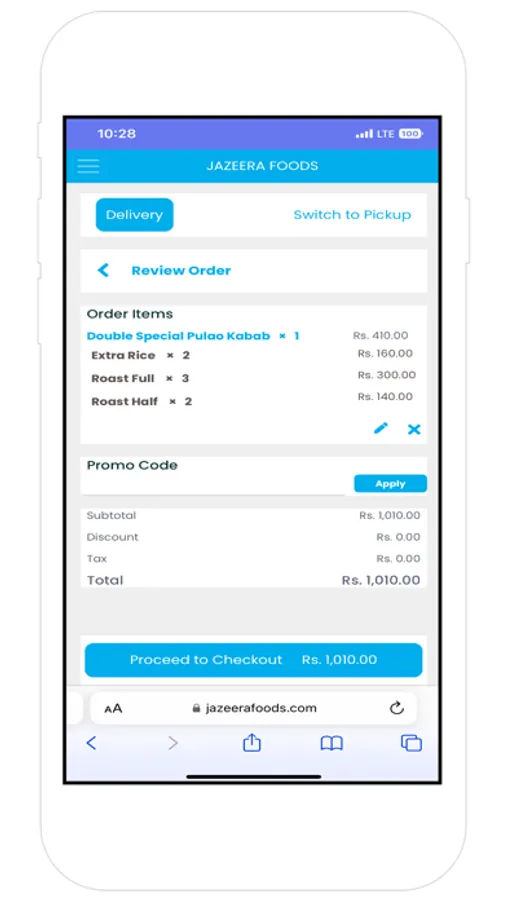 The iOS app of Jazeera Foods makes it very easy for iPhone users to order scrumptious chicken pulao right from the comfort of their homes. You can view the entire menu, make choices, edit your order and track your order status.