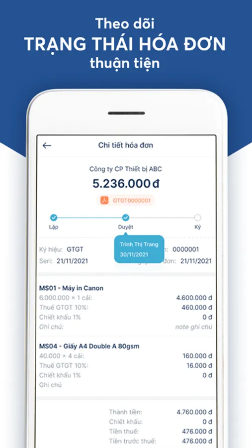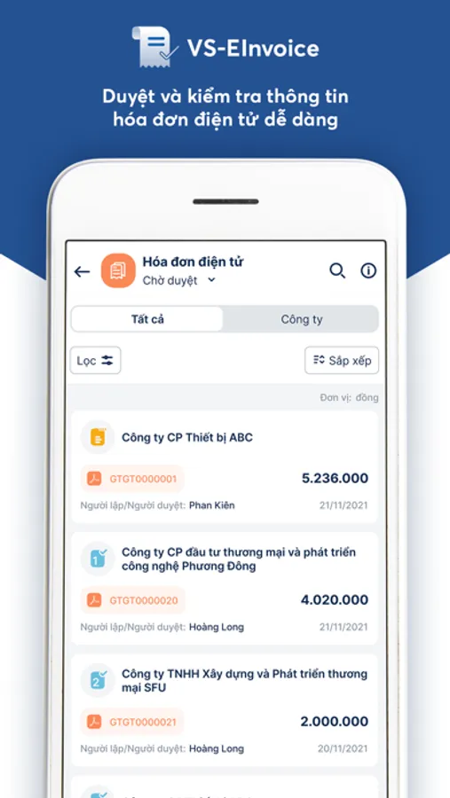 Ứng dụng cung cấp giải pháp giúp người dùng có thể duyệt, ký hoá đơn điện tử của công ty một cách thuận tiện nhất mà không cần phải làm việc trên máy tính cá nhân.