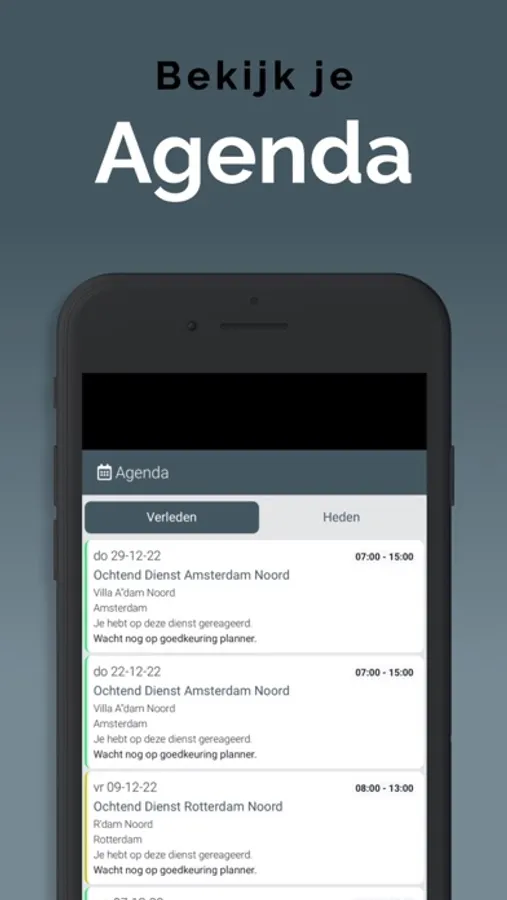De App is gekoppeld aan het systeem waardoor informatie altijd up-to-date is, via een overzichtelijk dashboard. Bovendien komen belangrijke meldingen, als nieuw beschikbare opdrachten, via een push melding binnen op het apparaat. Zo zie je niets over het hoofd. Ook wijzigingen worden direct zichtbaar, ook in de agenda. Je bent dus altijd op de juiste plaats aanwezig.