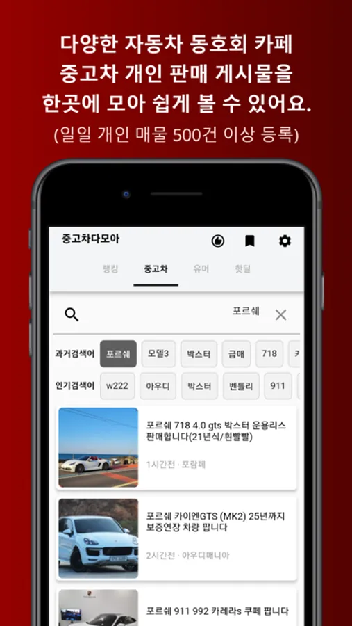 다양한 자동차 동호회의 중고차 개인매물들을 한곳에 모아 편리하게 볼 수 있습니다.