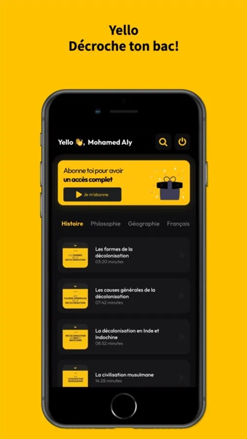 YELLO est une application mobile qui propose tous les cours de la classe de terminale en fichier audio ; les épreuves du baccalauréat de l’an 2000 à nos jours et les différents livres au programme en fichier PDF et audio. Elle propose tous les cours de la classe de terminales (Philosophie, Histoire, Géographie, Français, Mathématiques...) En fichier audio pour faciliter la révision. Les appareils mobiles peuvent s’avère fort utiles, pour des usages allant de la simple prise de notes pendant les cours à des applications plus avancées. YELLO offre ainsi des possibilités éducatives que nous ne pouvons pas avoir couramment avec d'autres outils d'apprentissage. Elle permet notamment aux élèves d'accéder au contenu n'importe où et en tout temps, et de vivre de nouvelles situations d'apprentissage dans des différents lieux et non seulement à l'école.