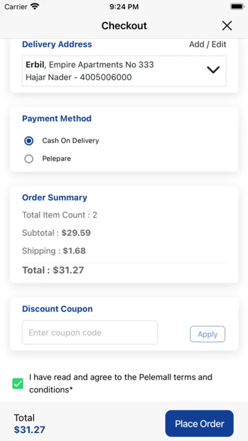 Through its logistics, sales, delivery, and customer care experienced professional team since 2011, Pelemall initiates a mission that offers a real taste of shopping in Iraq to all you valuable potential customers for both retail and online marketplace purposes. Our brand "Pelemall" name is a combination of two words, "Pele" means "to hurry, sometimes to be quick or fast" in Kurdish, and "mall" means "shopping area" in English.