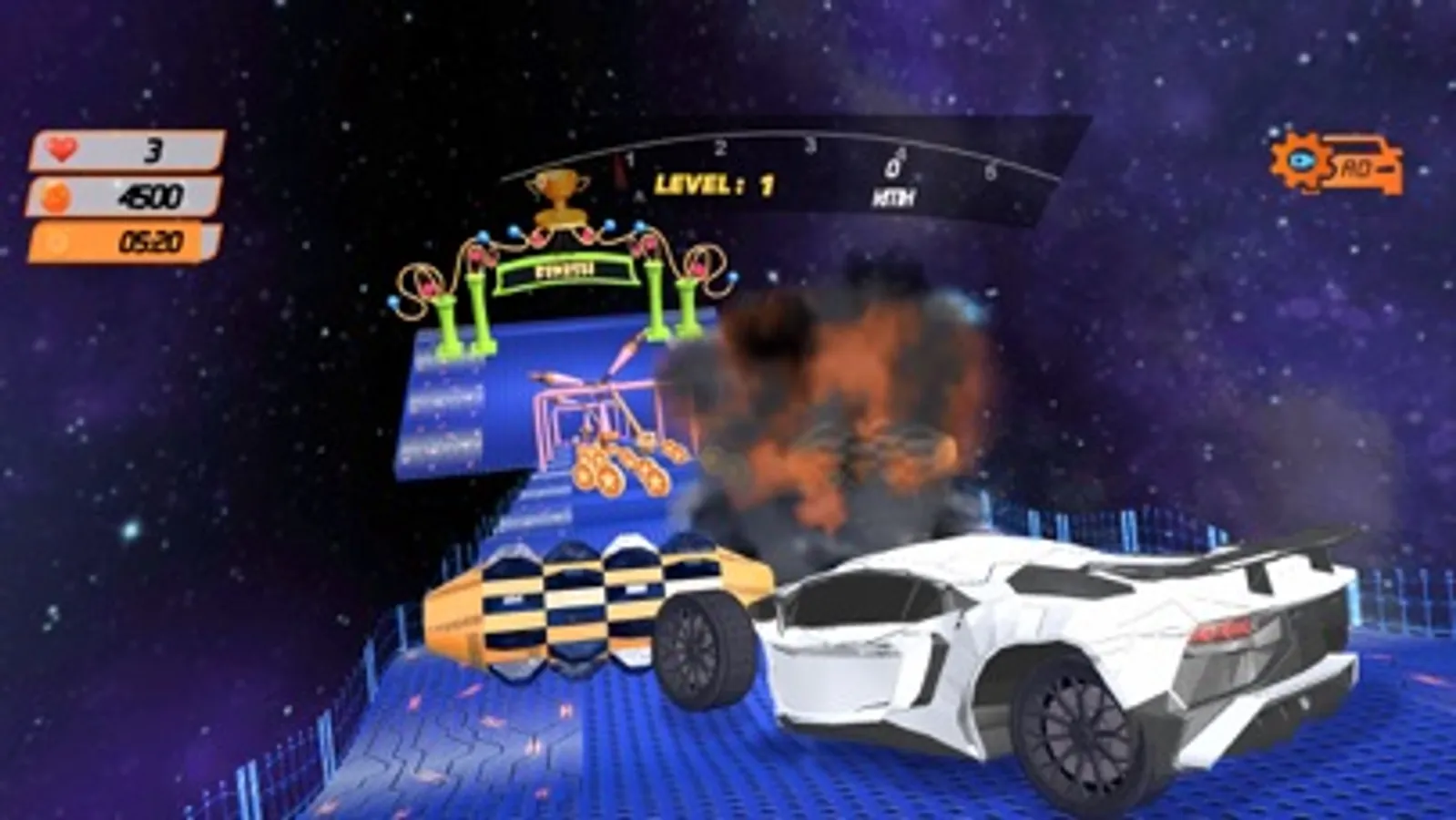 Avoid crashing expensive cars on demolition tracks full of giant obstacles!