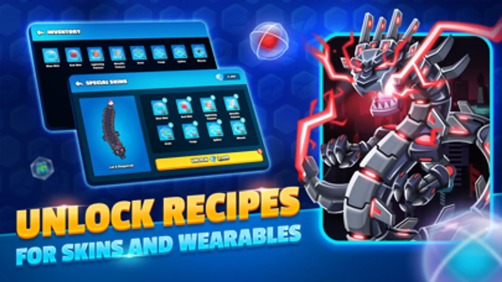 Feeling like challenging yourself? collect all hundreds of unique special skins offers in Snake Evolution compendium! Each Skin has a unique recipe which requires different traits collected in-game by competing against other snakes. Craft & Collect special Skins to show off the world of your achievements!
