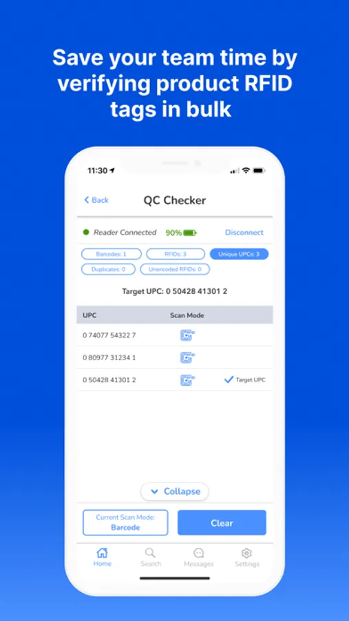 Ensure labeling accuracy and streamline your quality control processes with QC Checker, the powerful iOS app designed for retailers and manufacturers who demand top-notch quality assurance. With AsReader's versatile scanning devices and Xemelgo's cutting-edge technology, QC Checker provides fast and reliable verification of RFID label encoding, ensuring they accurately match the UPC barcode.