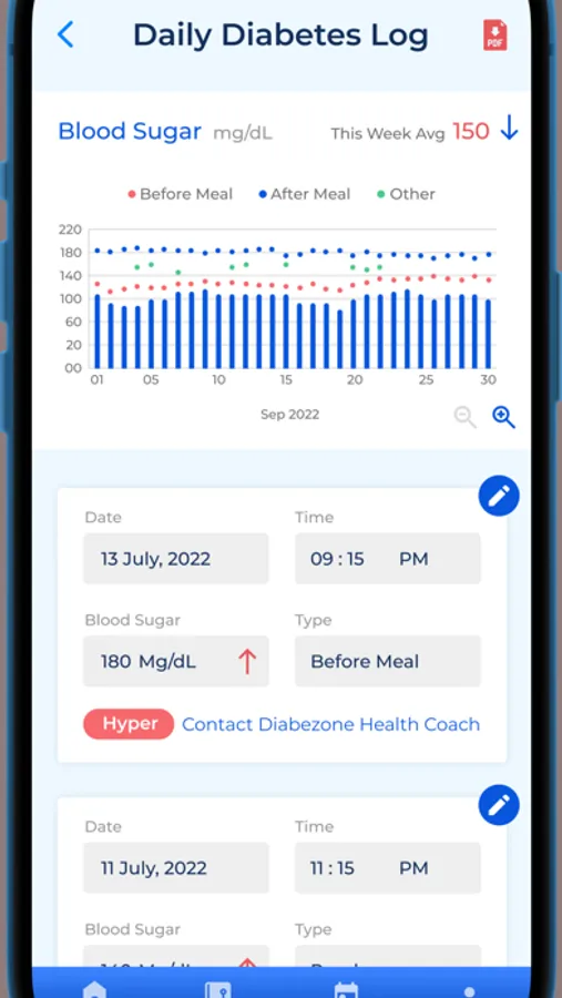 The Trend predictor chart records spikes and dips in sugar levels and other vitals. You would be able to assess when your blood sugar levels are in control and when not.