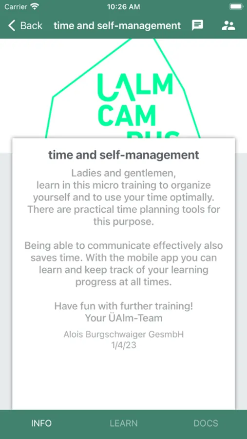 Digitised education can increase the effectiveness of training and demonstrate the sustainability of the knowledge acquired. In addition to successfully established training channels, the mobile app from the Übergossene Alm Resort provides training where the practice begins. It offers learning content where it is needed. In small snacks for in between. Always and everywhere. Short and crisp, flexible, and modular. A mix of formats and content conveys relevant knowledge in a playful and easy way for a sustainable learning effect.