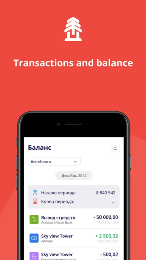 - view the monthly balance report and transactions for each object
