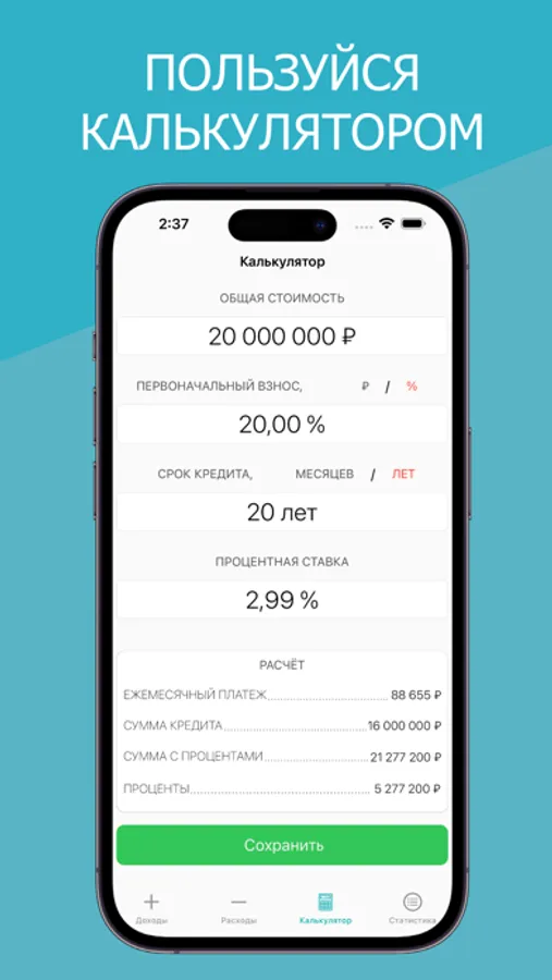 Также, благодаря нашему калькулятору, МойПлатеж помогает рассчитать сумму ежемесячного платежа в кредите и добавить в Ваши расходы, чтобы понимать, стоит ли брать кредит, или лучше убавить какие-то расходы и поискать дополнительный заработок. Также мы добавили возможность поставить пароль, чтобы никто, кроме Вас, не смог получить доступ к Вашим данным!