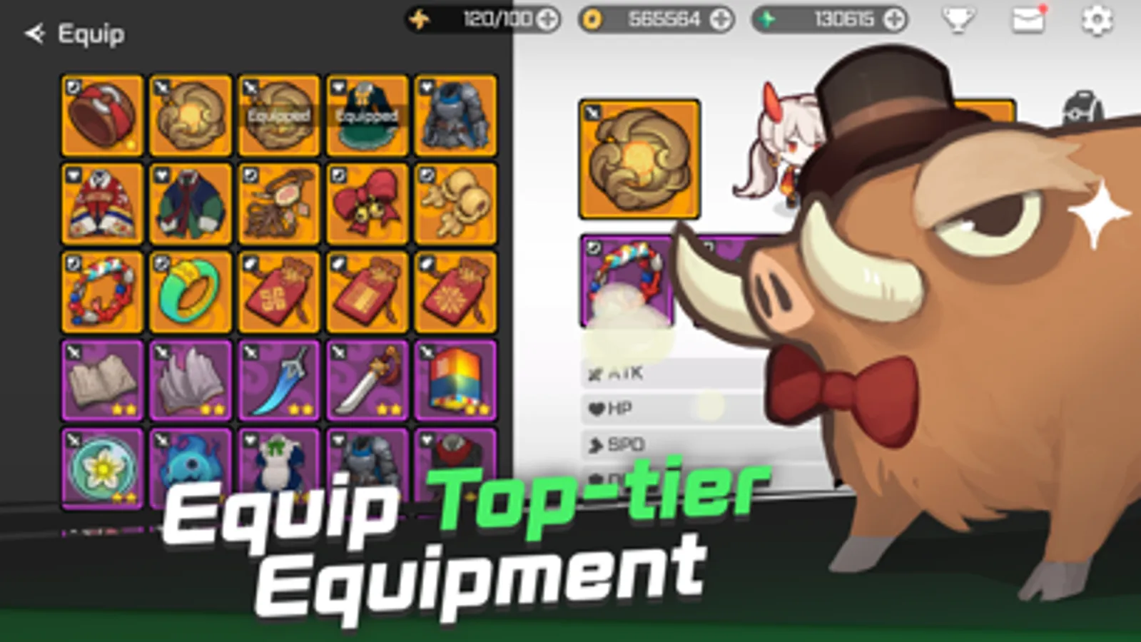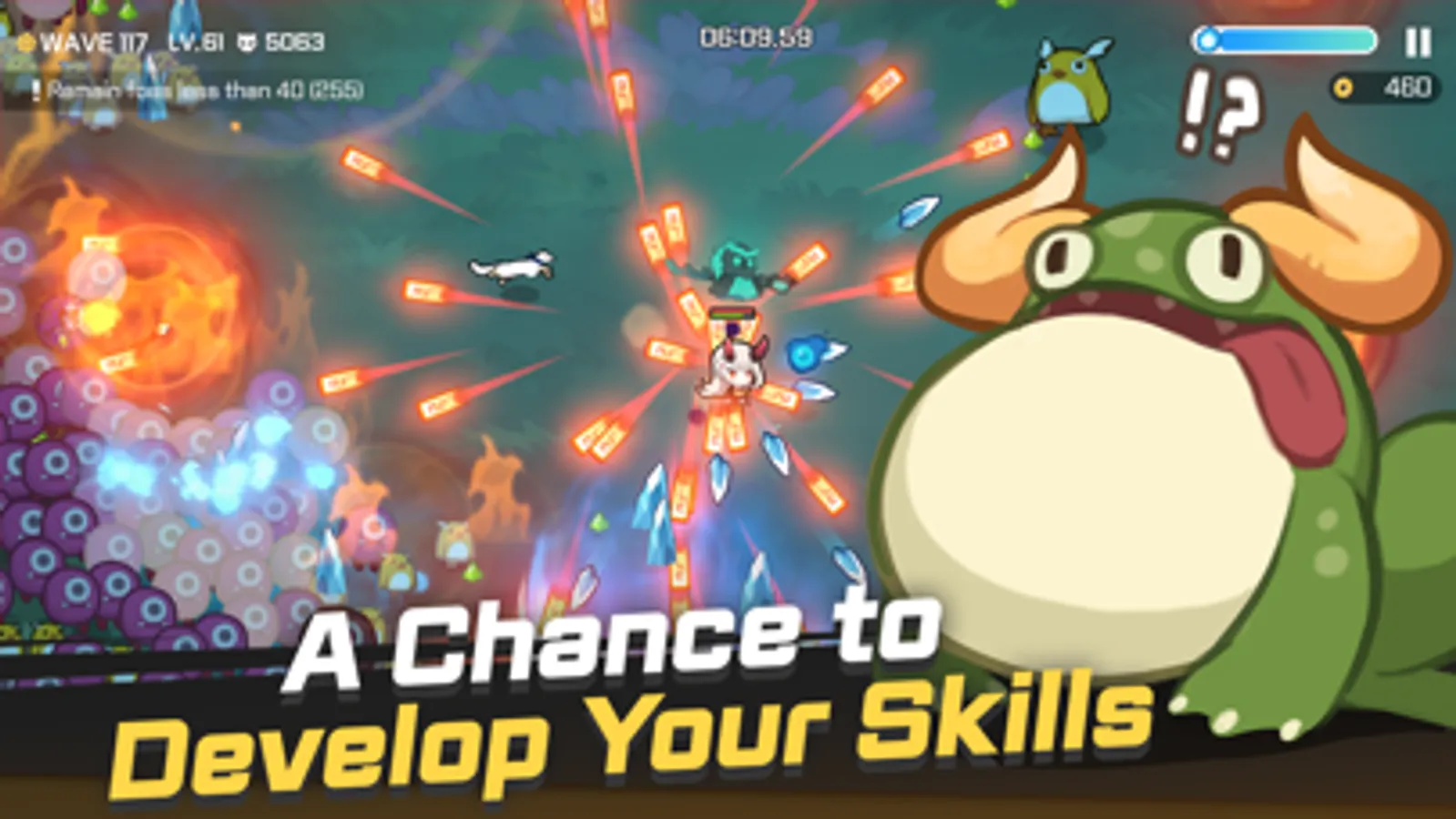 Use the attack skills and special skills in your equipment. Every weapon from Common to Mythic has one attack skill. If you look at the rank effect, you can see which element makes you more powerful when you attack. And the armor is equipped with special skills. A special skill that can absorb all EXP or completely eliminate enemies! Use it whenever you need help.