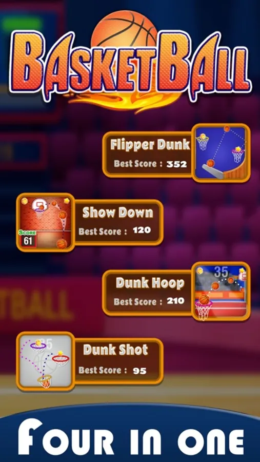 Collection of basket ball games includes: Dunk Shot, Dunk Hoop, Flipper Dunk and BasketBall Showdown. The best basketball games ever!