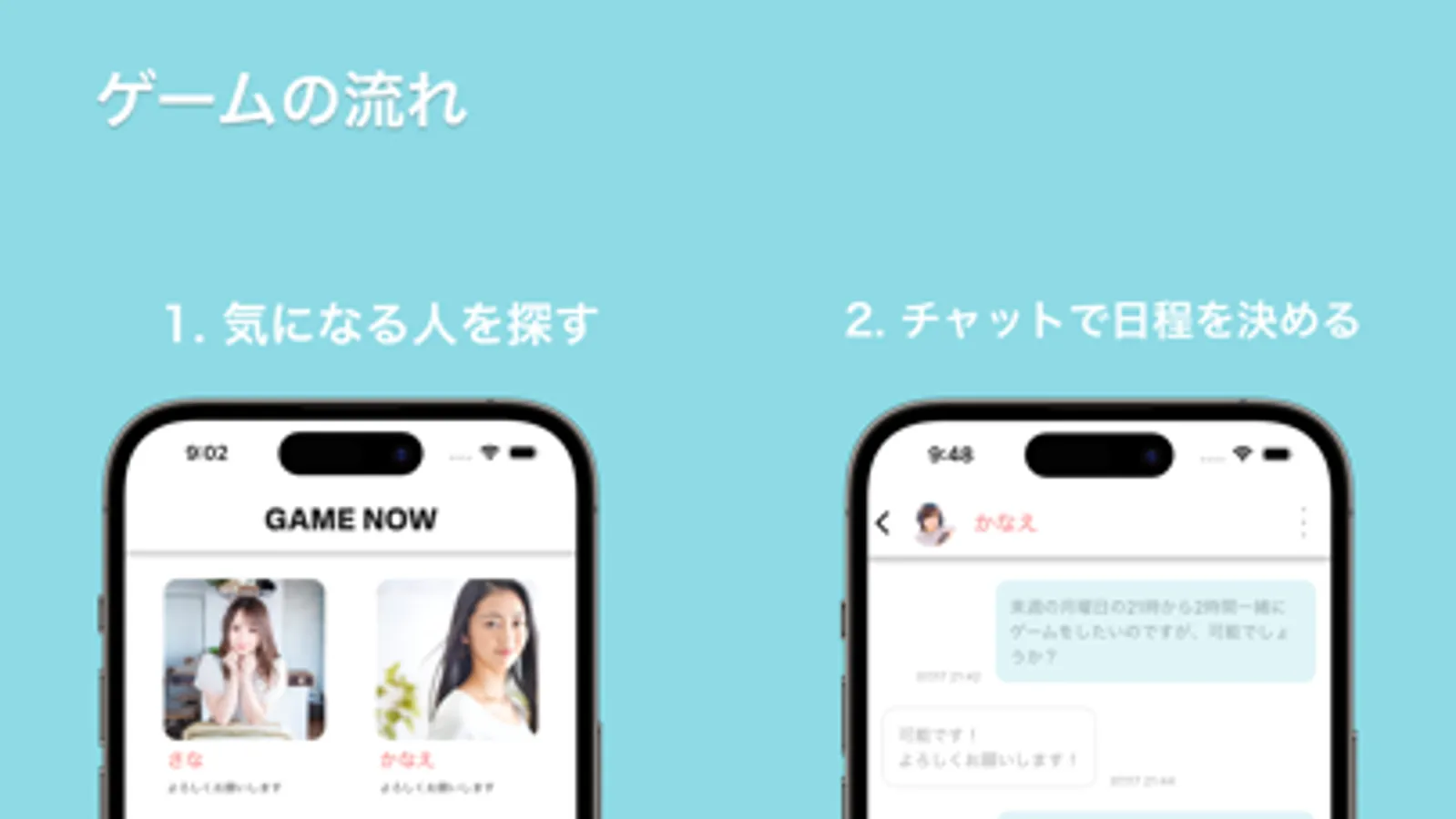 GAME NOWは一緒にゲームする相手を繋ぐアプリです。今まで知り合うのが難しかった異性のゲームフレンドをみつけられます。