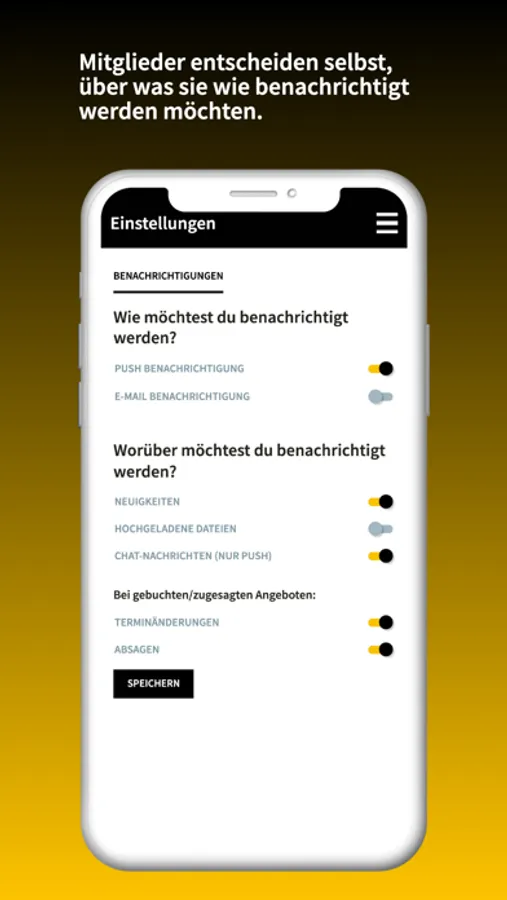o Benachrichtigungs-Optionen per Push-Nachricht oder E-Mail