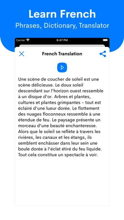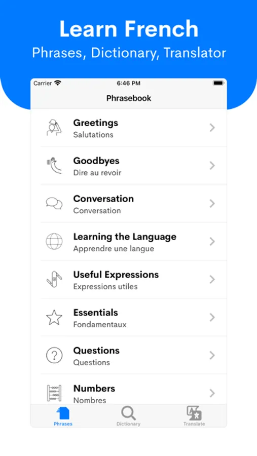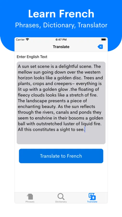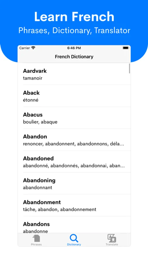 The app also includes a translator that can translate text from English to French and vice versa. This is a great tool for translating words and phrases that you don't know, or for translating entire documents.