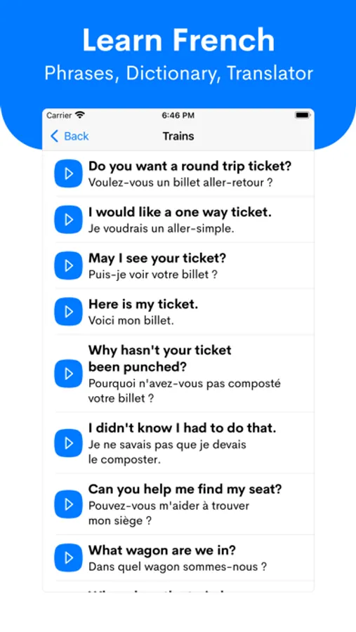 The app includes a comprehensive dictionary with over 10,000 French words and their English translations. You can also use the dictionary to look up words in context, which is helpful for learning how to use them correctly.