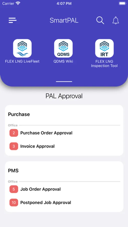 The Approval App is specifically created for office users to promptly approve requests within various smartPAL modules throughout the approval process. The use of real-time push notifications helps to decrease the time taken to respond, ensuring quick action. Furthermore, it serves as a platform to display and guide users through all of MariApps' Mobile Apps.