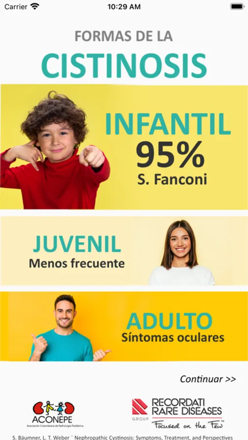 Aplicación diseñada para todos los profesionales de la salud que requieran información sobre la sospecha, vías diagnósticas y manejo terapéutico de los pacientes pediátricos con cistinosis nefropática y ocular.