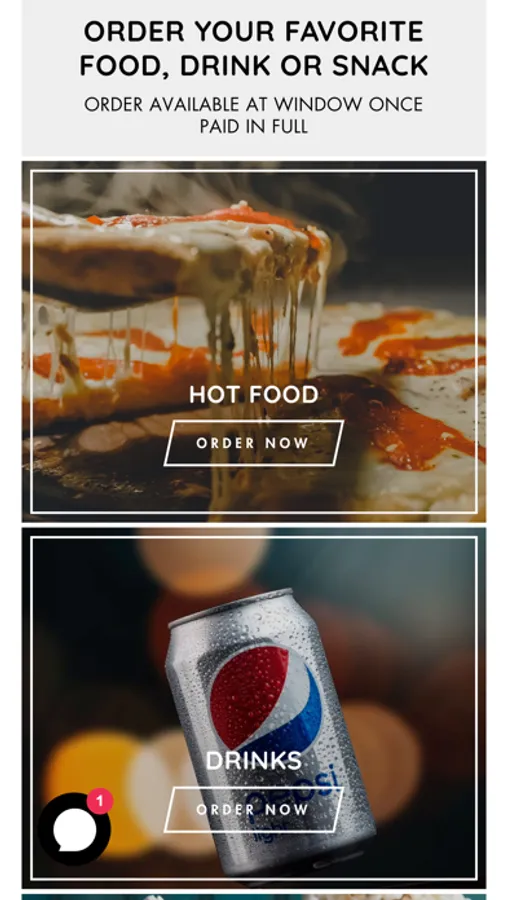 Allows customers to order concession food from their seats. You can order your favorite food, drink or snack.