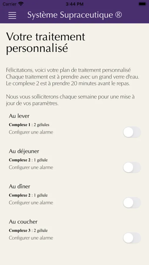Le Système Supraceutique® est le premier système d’intelligence artificielle d’aide à la chrono-nutrition, pour délivrer la juste dose au bon moment.