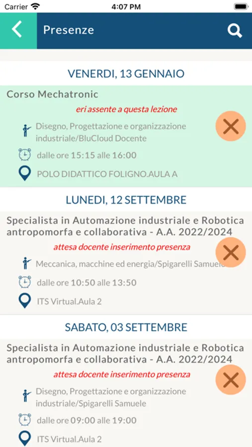 Tramite l’App per iPhone, i docenti gestiscono il proprio calendario, inseriscono le presenze, inviano comunicazioni e ricevono notifiche; hanno accesso allo storico delle ore effettuate ed ai compensi maturati.