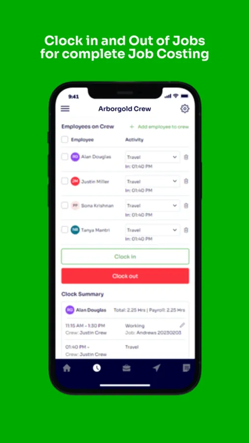- Clock in and out of jobs