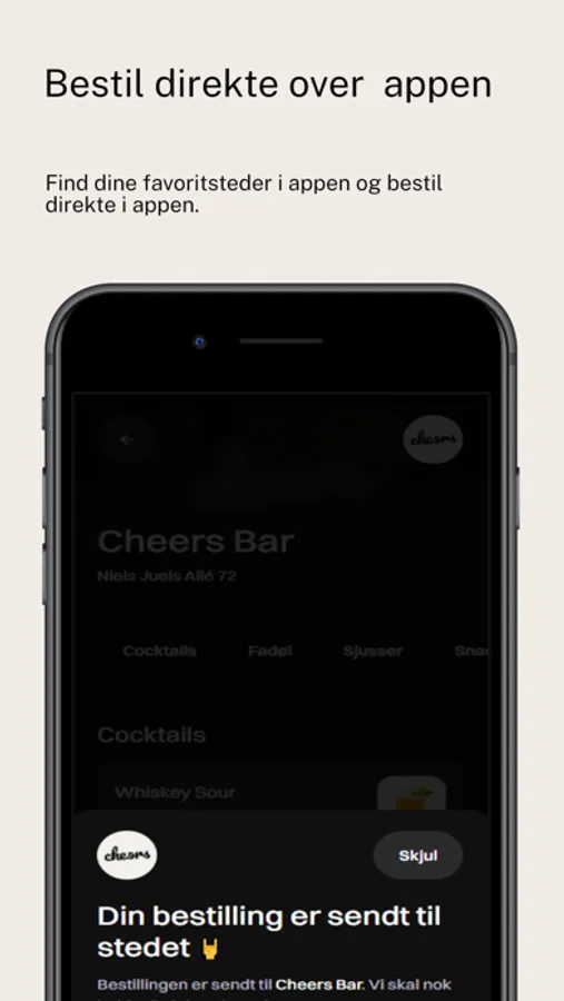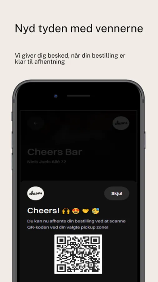 Er du træt af at stå i kø i timevis for at få en drink med dine venner? Så prøv Cheers! Med Cheers kan du bestille og betale for dine drikkevarer direkte fra din telefon, så du kan gå i baren for at hente dem, når din bestilling er klar. Hvis du mister kontakten med dine venner under aftenen, kan du nemt finde dem igen med appen.