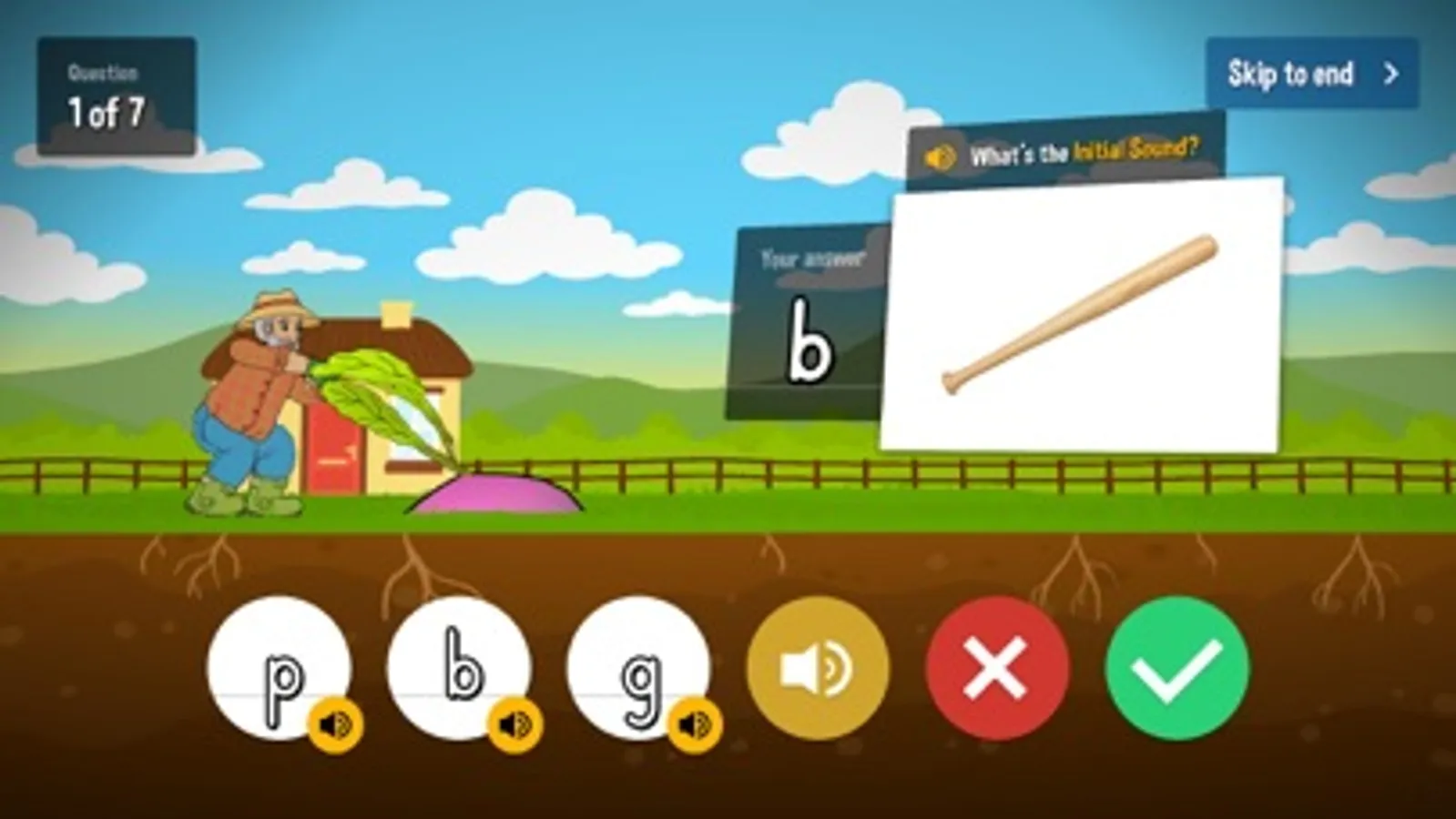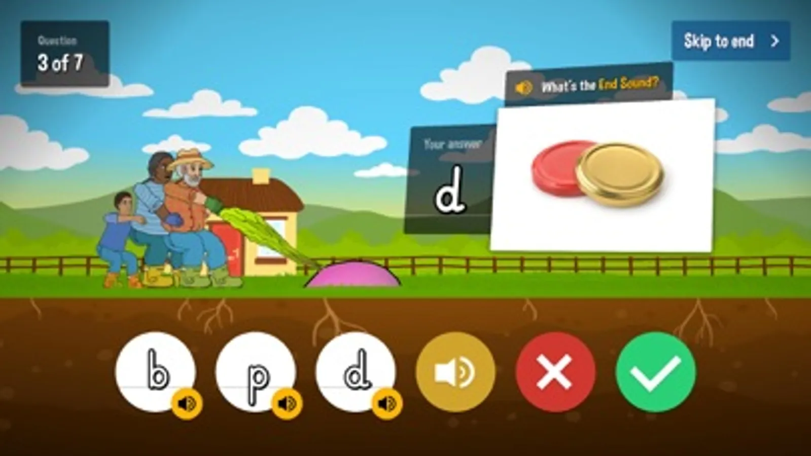 "The Enormous Turnip CVCs" is an interactive and fun phonics game that is part of the "Fairy Tale Phonics" series by Teacher's Pet. This game is based on the classic story of The Enormous Turnip, in which kids will have a blast matching the sounds of CVC (consonant-vowel-consonant) words to the initial sounds (and middle/end sounds too) to help the characters pull up the turnip.