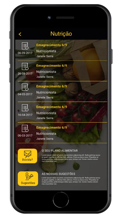 Após consulta com o nosso nutricionista no ginásio poderá consultar o seu Plano Nutricional, assim como ter acesso a dicas para melhorar o seu estilo de vida. Nesta área também poderá comunicar com o seu Nutricionista.