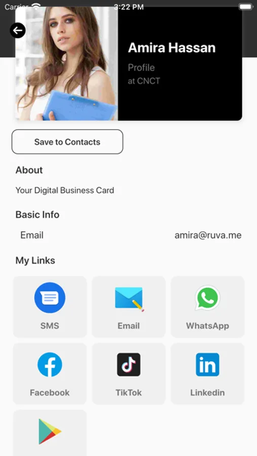 Introducing our Digital Business Card app – the modern and efficient way to connect and share your professional information. Quickly create your profile with all your personal and professional details, including name, title, company, contact information and profile picture. Choose from customizable templates to give your digital business card a unique look that represents your personal brand. Generate a unique QR code to easily share and add your digital business card to others' contacts. Manage all your contacts in one place and view their digital business cards directly from the app. Say goodbye to traditional business cards and start networking in a more convenient and eco-friendly way.