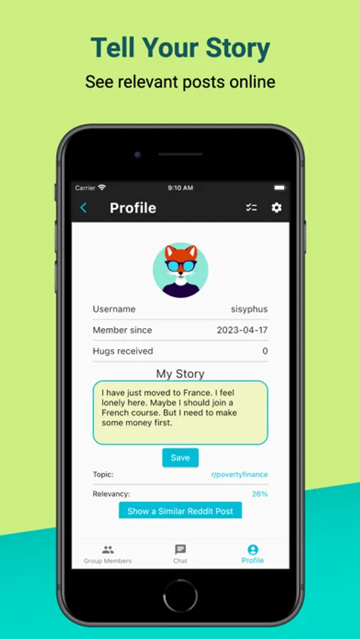 Have you ever wanted to talk about your daily problems with others who are going through the same thing? We match you with others based on your stories. Our AI engine looks for the best possible matches.