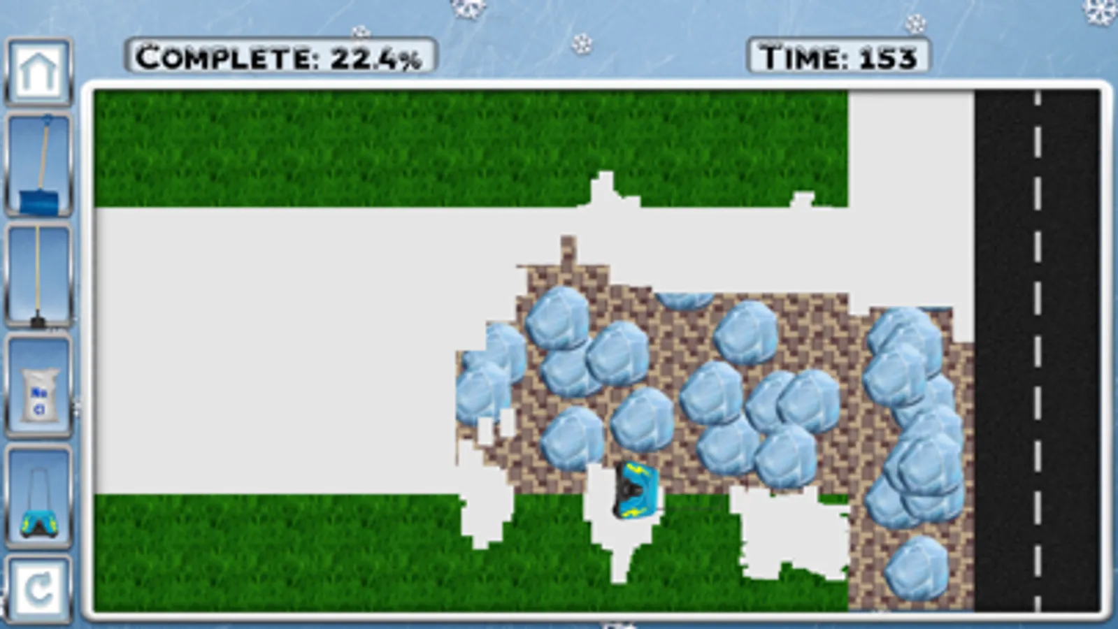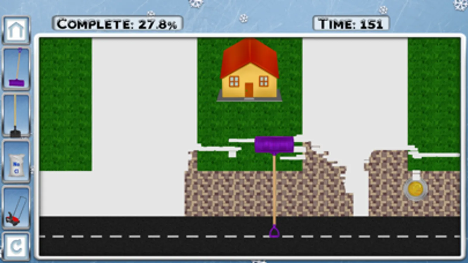 Snow Shoveler Lite is a timed casual game that simulates clearing snow and ice off of a driveway. The game uses a physics simulation to replicate the effects heavier snow or thicker ice has on shoveling a driveway. These effects are shown in the 8 levels of Snow Shoveler Lite and the player will use different shovels, ice picks, salts and snow blowers to help clear the driveway. The game also includes tutorials showing how to use each of these items.