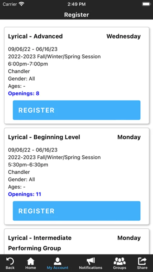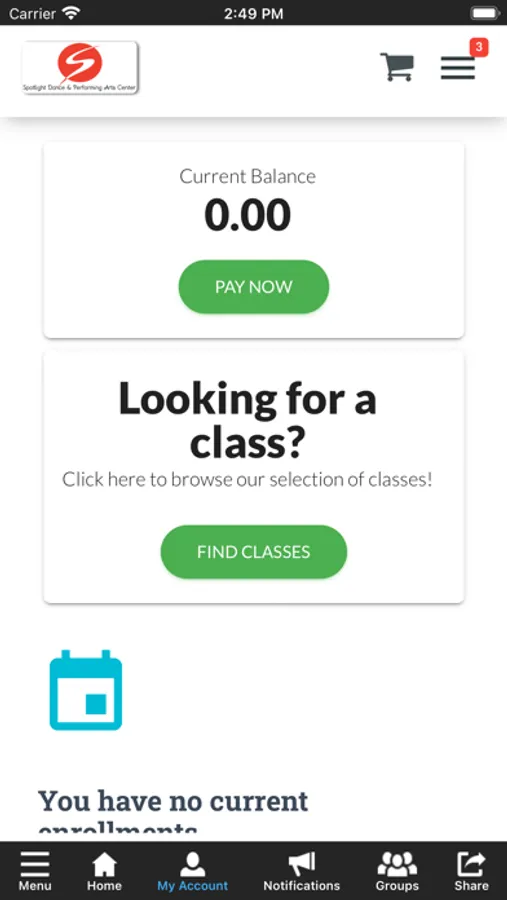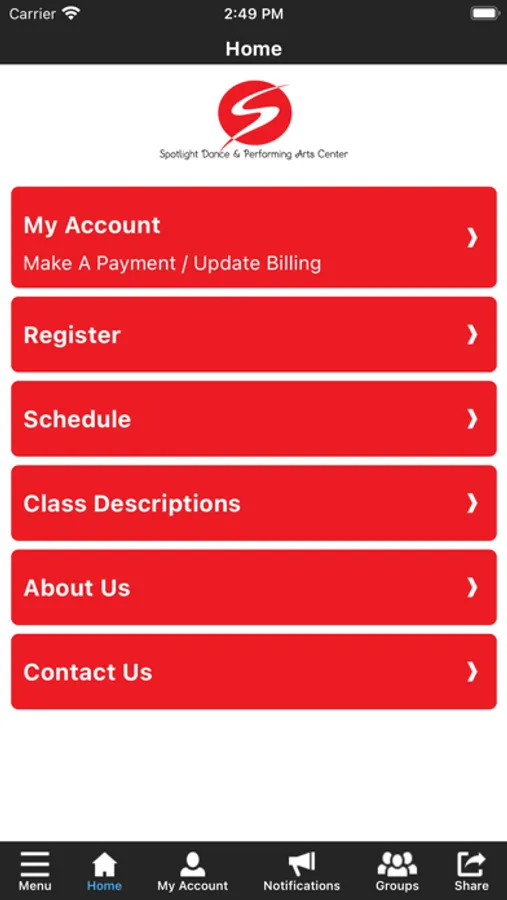 Spotlight Dance app allows you to manage your account with ease, register for classes, parties, and special events. You'll also receive important notifications about class changes, closings, registration openings, special announcements, and upcoming events.