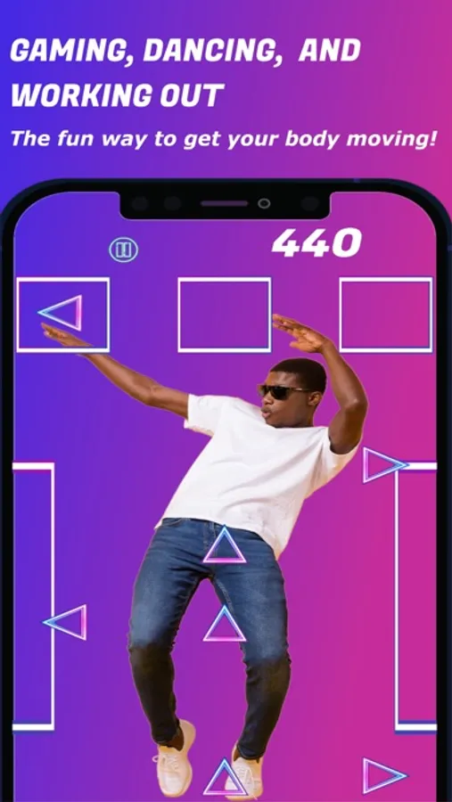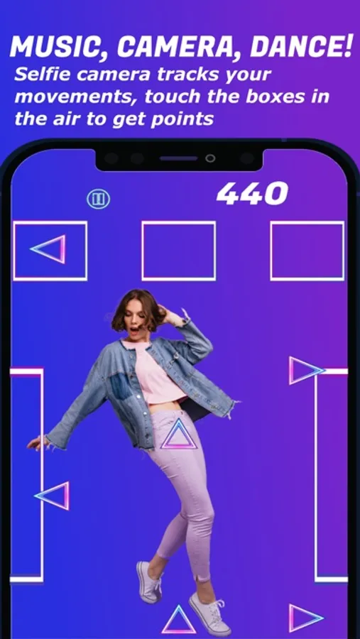 Epic Dance is a unique app that uses your phone's front-facing camera to track your movements. Touch the boxes in the air displayed on your screen as dance move markers pass through them to earn points. Get the highest possible points for each game and get your workout done through energetic beats and music.