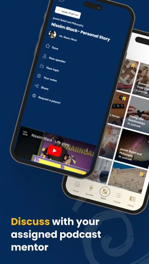 engage in meaningful discussions with mentors, and earn $15 for each podcast you listen to and