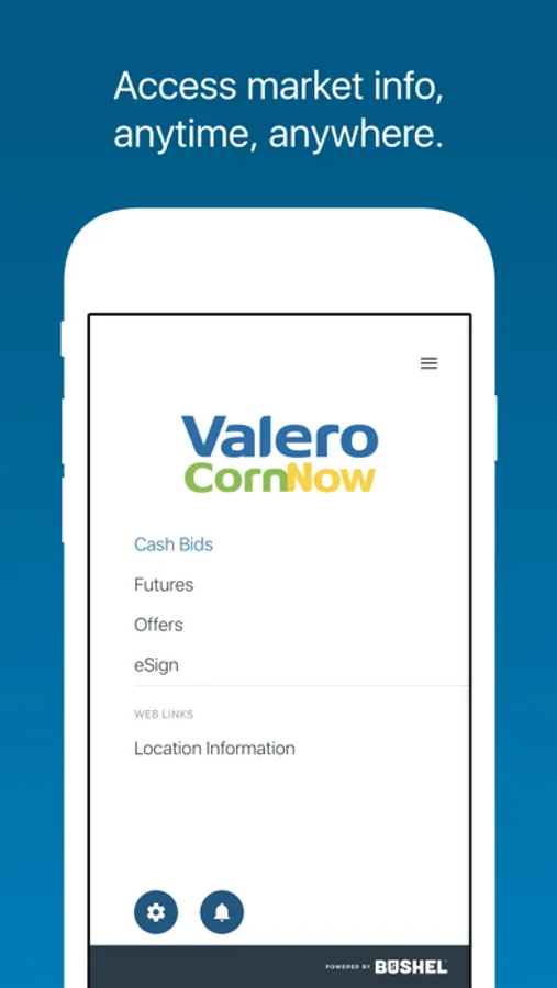 The Valero CornNow app is free, secure, and developed by the industry-leading Bushel platform.