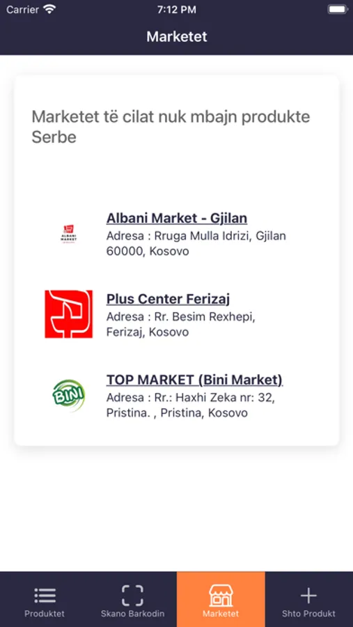 Aplikacion per kerkimin dhe skanimin e produkteve serbe ne marketet shqiptare