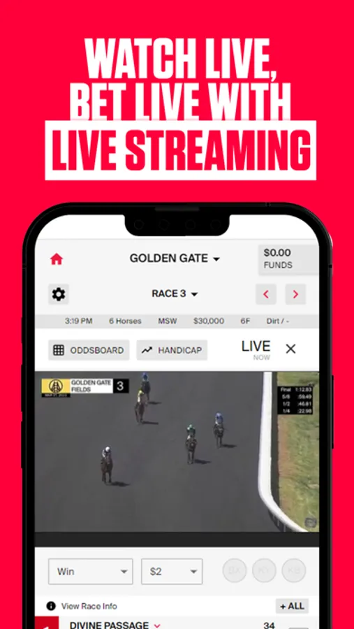 • Thousands of mobile markets and races to bet on from the comfort of your home, including fan favorites like the Kentucky Derby, Pegasus World Cup Invitational, Breeder's Cup and more