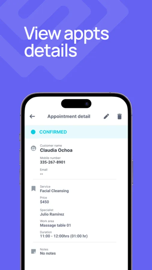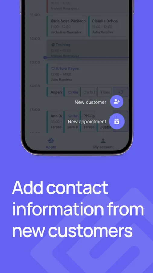 With the Clear mobile application, our customers can manage the schedules of their establishments from their mobile phones in a simple way. Our mobile application is directly linked to their web agenda in Clear.