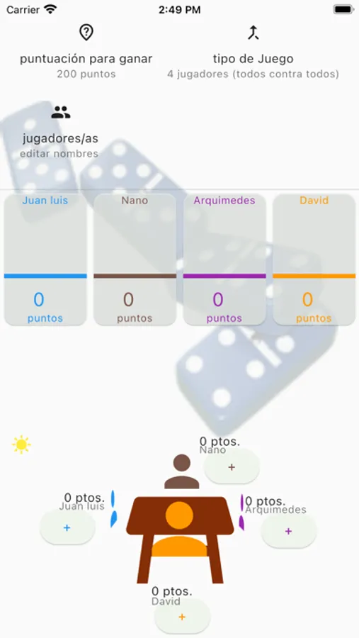 Nuestra app es la mejor herramienta para llevar una anotación de los puntos de una partida de domino. Podrás anotar y ver los puntos de cada jugador, independientemente si el juego es un 2 contra 2, 1 contra 1 o todos contra todos.