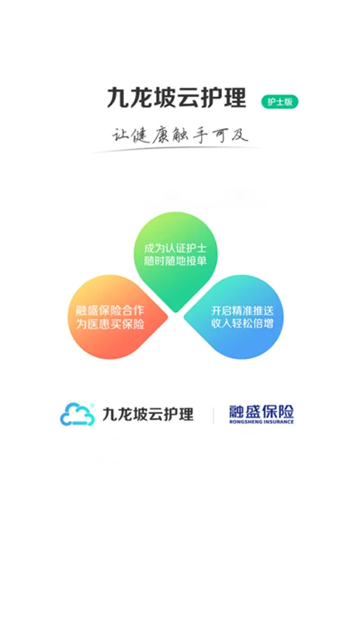 九龙坡云医院护士版是东软熙康健康科技有限公司推出的专业上门护理服务管理软件,在护士开展上门护理服务时,提供专业的、高效的、安全的、规范的服务平台及工具。平台根据订单信息自动匹配,通过九龙坡云医院护士版向护士推送,在护士接单后,开展上门护理服务过程中,完成整个过程的规范记录。是为护士量身定做的移动工作站。让护士在闲暇之余灵活配置上门工作时间,获取更多的收入。