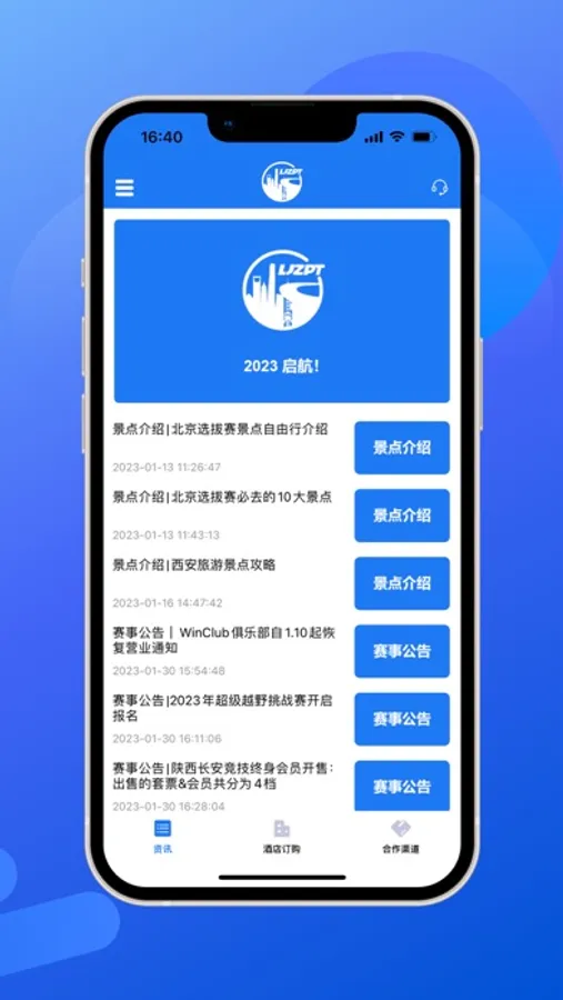 LJZPT是一提供赛事、旅游资讯服务、酒店订购及商务合作推广的APP。为广大运动员提供及时的赛事、旅游资讯酒店订购服务,也为各大赛事以及俱乐部提供商务合作信息发布服务。