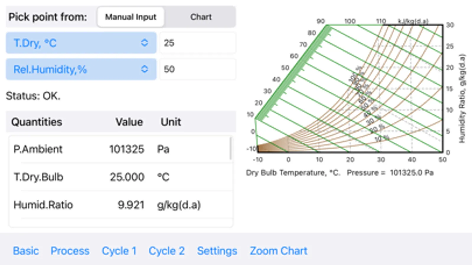 A convenient, precise and customizable psychrometric chart & calculator tool for HVAC engineers. Support IP and SI units.
