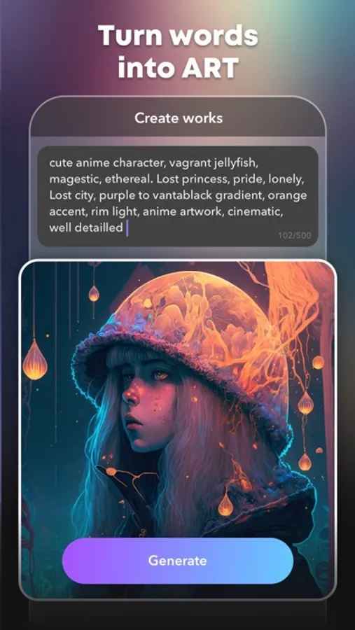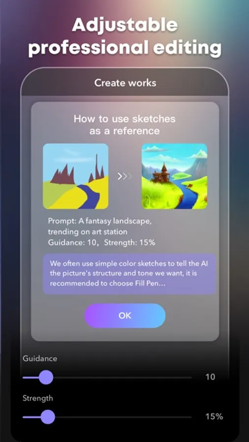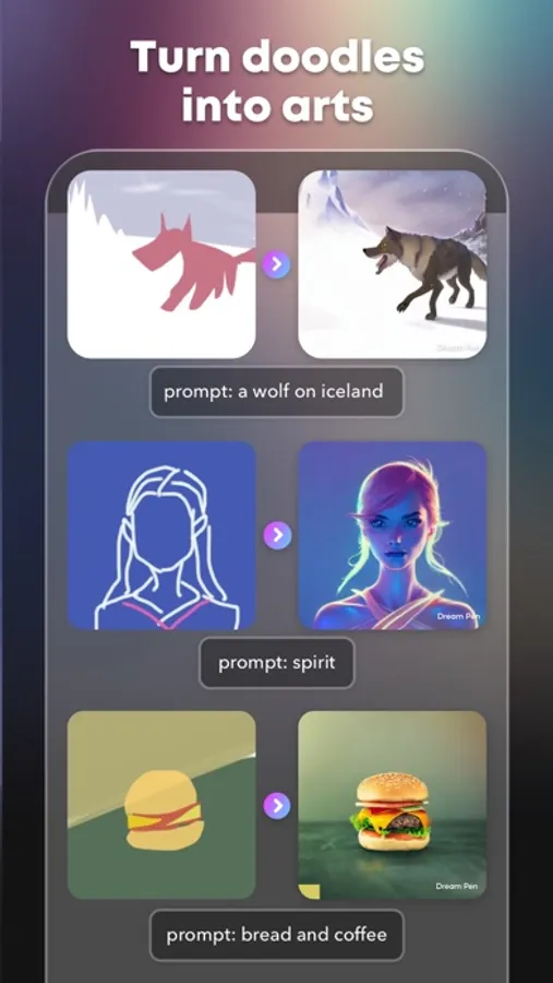 Dream Pen is your dream partner, providing the latest AI technology to quickly generate the image you imagined! And with the rich brush options, easy color adjustment, and liquify functions, you can easily inject soul into your AI artwork!